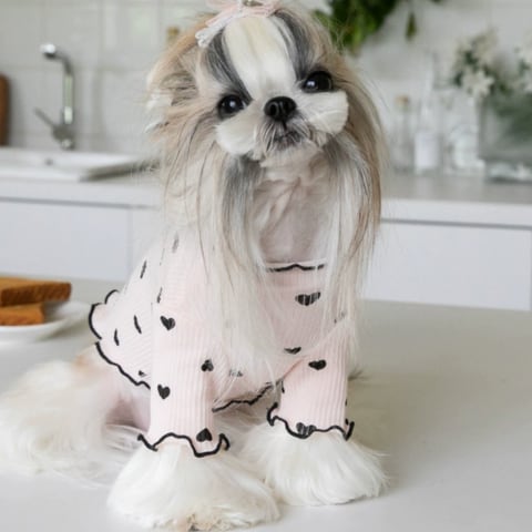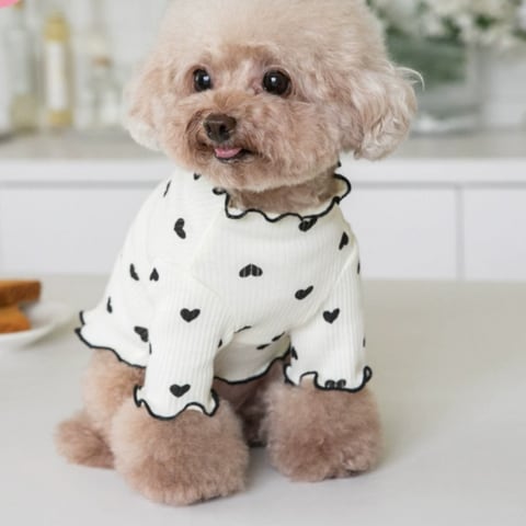 愛犬のおしゃれを楽しむ春の必需品!リブ素材ハート柄トップス|春先まで着れる犬服!