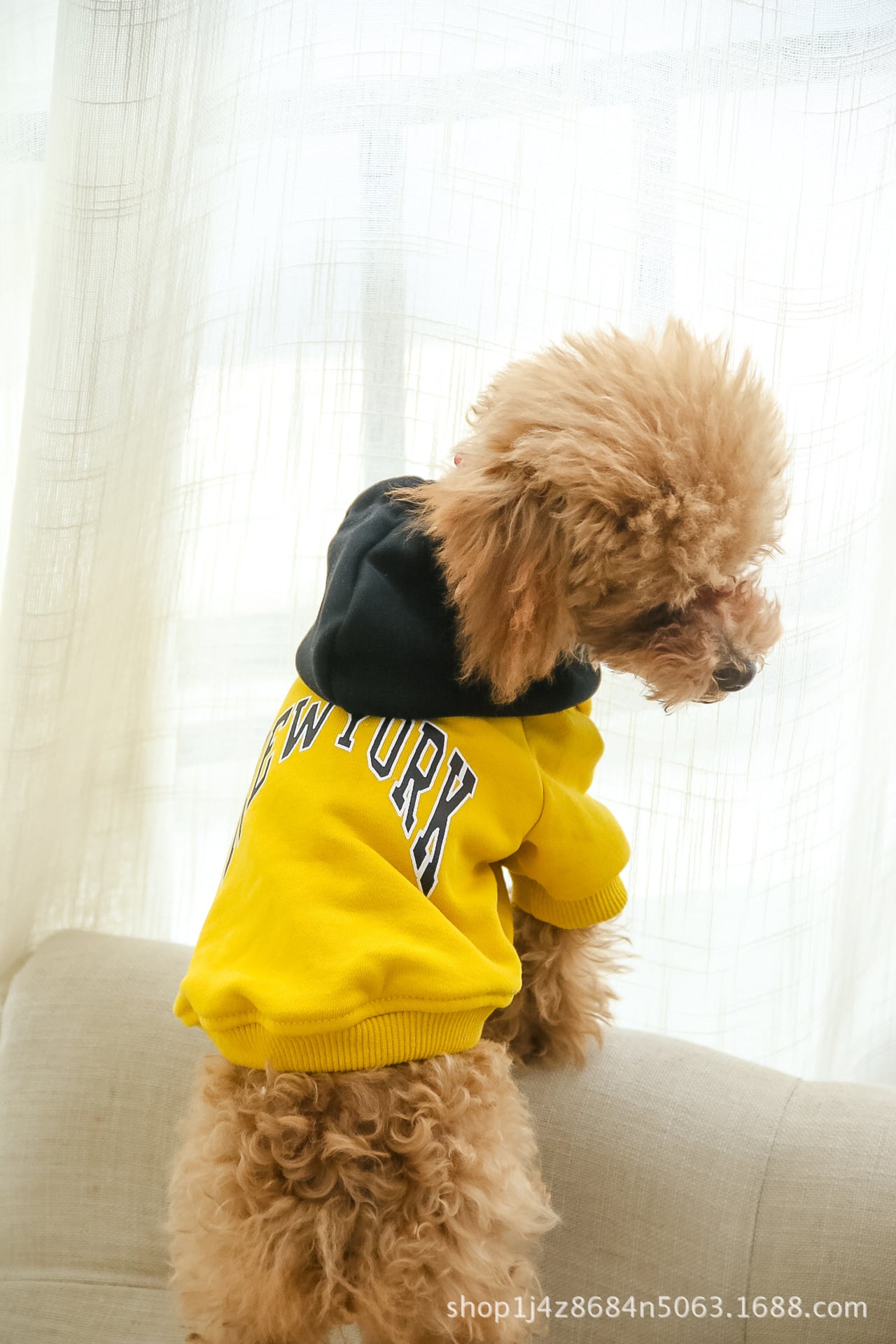 「ニューヨークロゴ入りパーカー」は、愛犬にスタイリッシュな印象を与えるカジュアルなデザインが特徴です。柔らかなフード付き素材で、寒い季節のお出かけも快適に過ごせます。お洒落に決めた愛犬とのお散歩タイムを、さらに楽しく演出します!