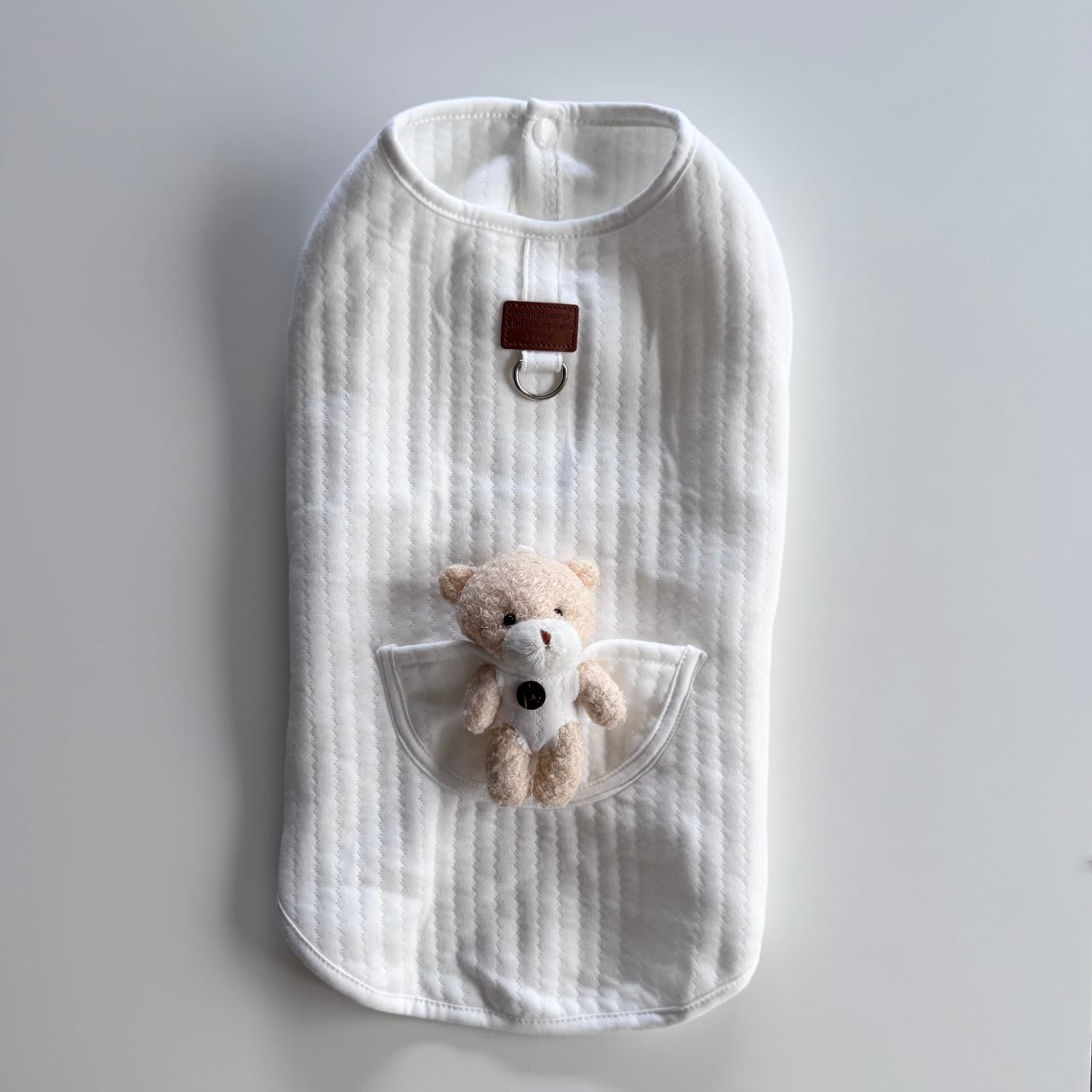 「コットンくまベスト」は、愛らしいクマのぬいぐるみが背中に付き、シンプルで可愛いデザインのベストです!やわらかいコットン素材が体に優しくフィットし、快適な着心地を実現しています。このベストを着て、特別な時間を愛犬と一緒に過ごしてみませんか?