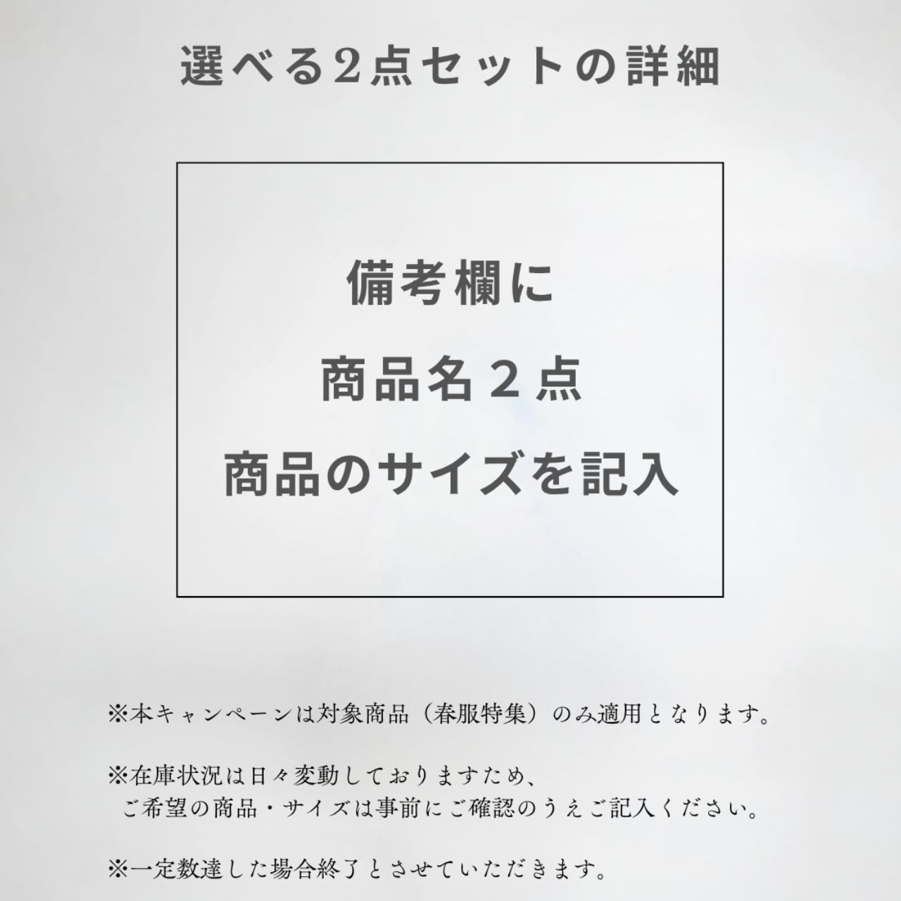 【予約】春服キャンペーン|選べる2点セット(春服特集限定)