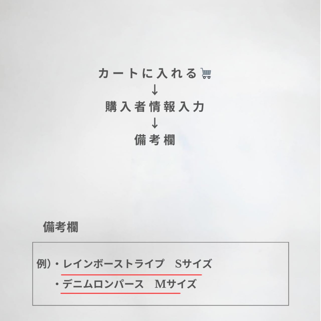 ・ご希望の商品名・サイズを備考欄にご記入ください。