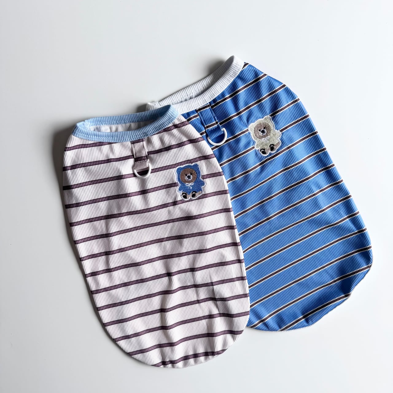 「くまワンポイント細ボーダータンクトップ」は、愛犬のおしゃれを楽しむための可愛いドッグウェアです!青色、白の2色に細いボーダーが施されており、クマのワンポイントがとても愛らしいデザインとなっています。このタンクトップで、お出かけや散歩の際に愛犬と一緒に素敵な時間を過ごしてみませんか?