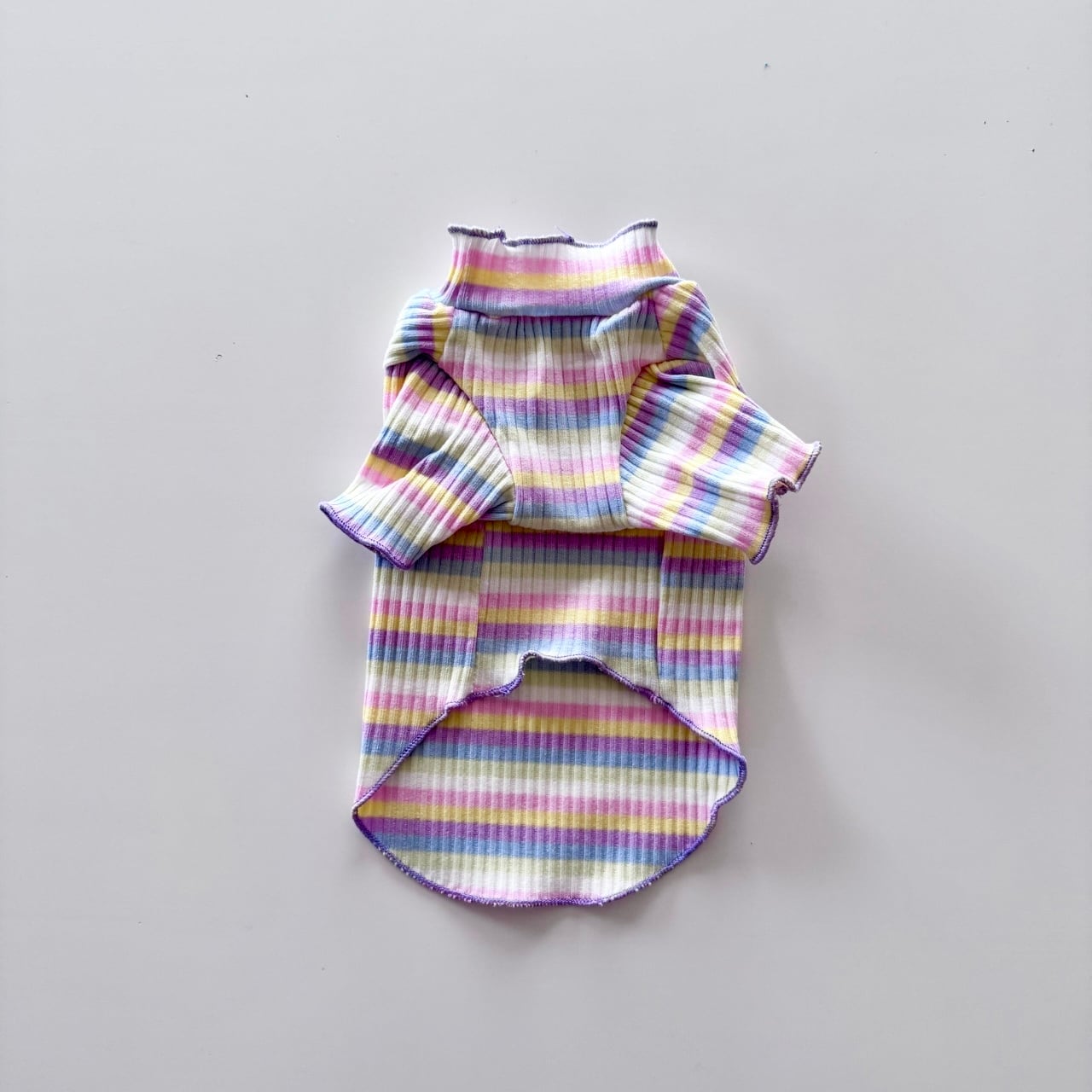 「レインボーストライプ」は、愛犬にぴったりの可愛いレインボーカラーが魅力の一着です!春夏のおしゃれに欠かせないアイテムとなっております。
